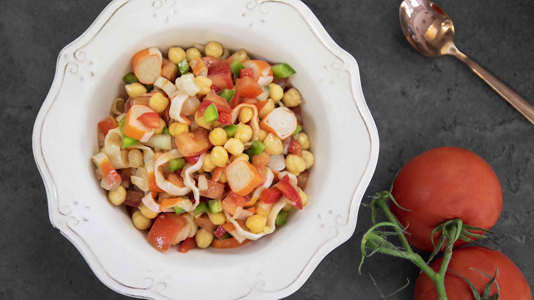Salpicón de garbanzos y palitos de cangrejo en Olla expres